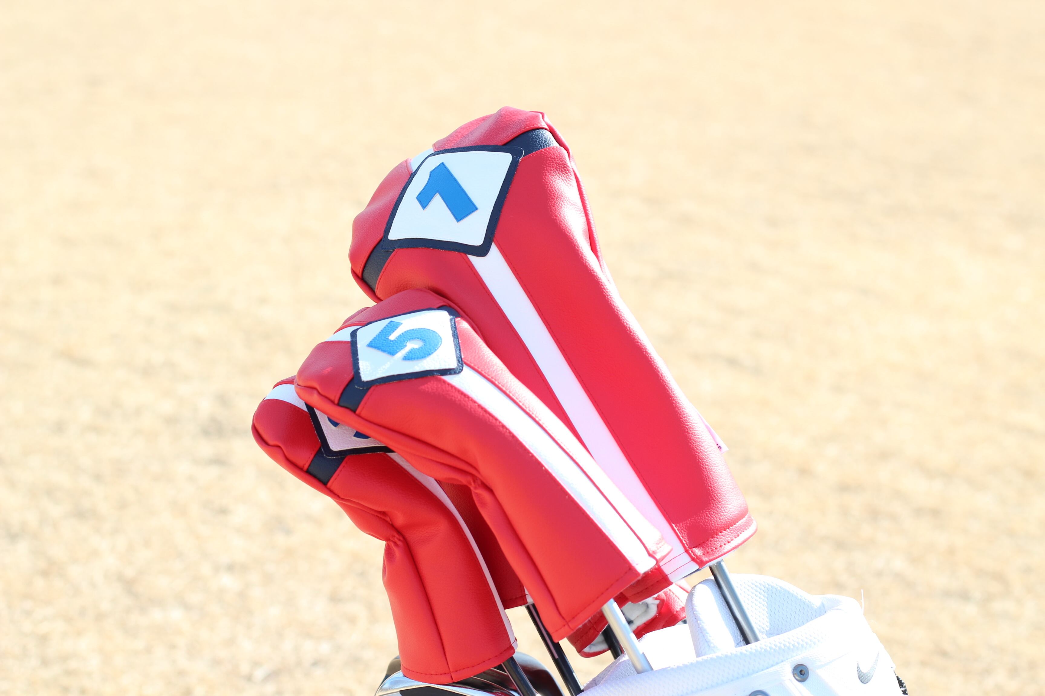 赤をベースに紺&青を使ったヘッドカバーセットです♪